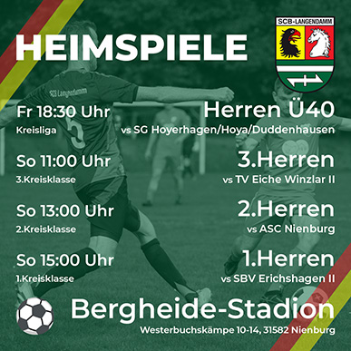Der Sport-Club Bergheide Langendamm wurde 1948 gegründet und ist mit über 500 Mitgliedern einer der größten Vereine in Nienburg. Er bietet eines der umfangreichsten Sportangebote und unsere erste Billard-Mannschaft spielt aktuell in der 2.Bundesliga-Dreiband. Mit unserer breiten Auswahl an Sportarten wie Billard, Fußball, Handball, Tennis, Turnen aber auch Kickboxen und Faustball sollte je nach Lust, Zeit und Alter für jeden etwas dabei sein!